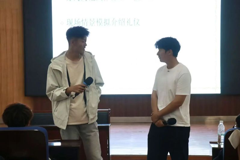 培训以“树礼仪之风 展文明风采”为主题,谷雪霏从“礼仪常识问答”切入,结合校园常见不文明案例引发新生思考——课堂内的早餐异味、迟到时的推门声响等场景,让新生直观认识到文明礼仪在校园生活中的重要性。在“学生形象塑造”环节,培训从仪容、服饰、举止、表情、语言五个维度给出具体要求。培训最后以“公关部长聘任考试”案例收尾,让新生深刻体会礼仪的实践价值,并呼吁新生“从今天开始、从平台入手、从细节践行”,学会现代礼仪,成长为“文明有礼的土木人”。
