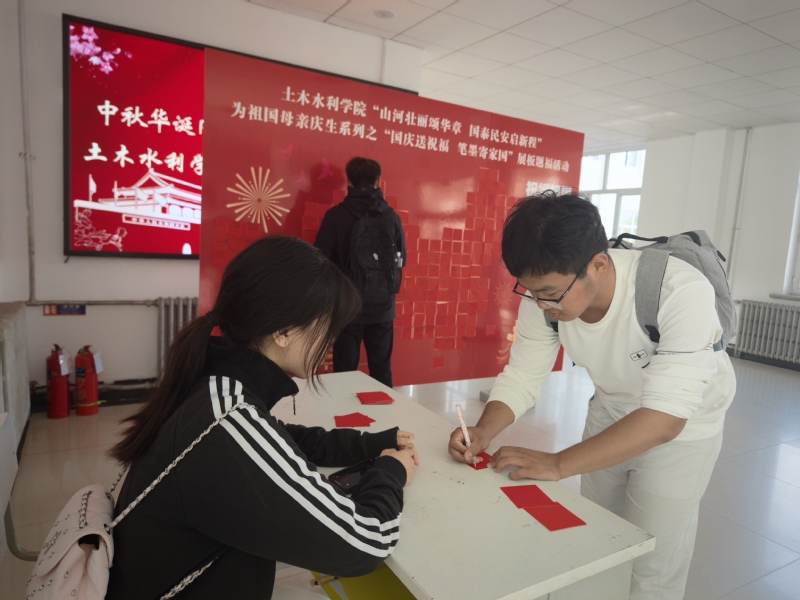 团日活动的余温尚未褪去,我院学子便怀着满腔热忱,移步楼下开展“国庆送祝福,笔墨寄家国”展板题福活动,以笔尖温情为祖国母亲献上最真挚的告白。现场,青年们写下“国泰民安”“山河锦绣”等祝福,一张张饱含深情的便签纸汇聚成主题展板,既传递了对祖国母亲的美好祝愿,更将个人理想与国家发展紧密相连。