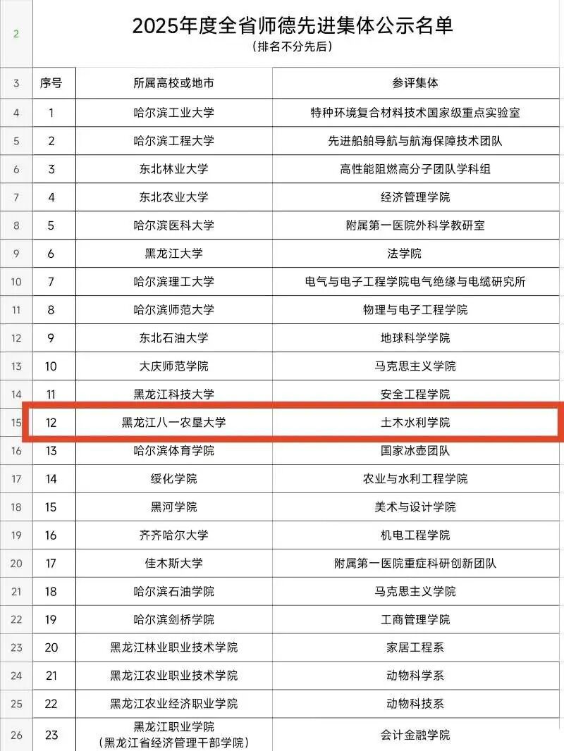 近日,黑龙江省教育厅公布2025年度全省教育系统师德先进集体和师德先进个人评选结果,本年度共评选出师德先进集体66个、师德先进个人180人。永利集团yl6809荣获“2025年度全省师德先进集体”荣誉称号。